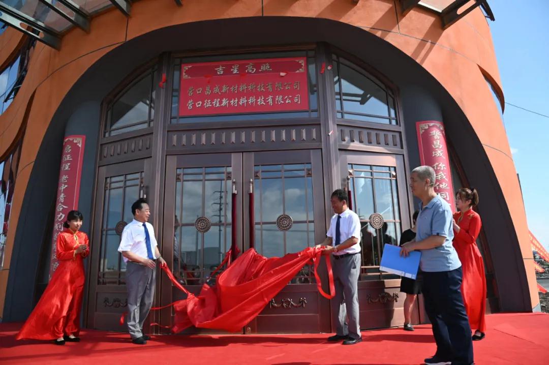 2021年7月20日,昌成新材廠區(qū)外彩旗飄揚(yáng)、彩虹門佇立,新落成的辦公樓前,16個(gè)氫氣球帶著紅色的祝賀彩帶迎風(fēng)飛舞,東門兩側(cè)張貼著鮮紅的對(duì)聯(lián):?jiǎn)⒄鞒汤现星嗪狭潣孙L(fēng)浪,誓昌成你我他同心揮毫繪江山,橫批:吉星高照,一樓員工食堂大廳人聲鼎沸、紅毯鋪地、綠植盎然,歡快的音樂(lè)縈繞四壁。昌成新材和征程新科辦公樓落成入住典禮將在這里隆重舉行。