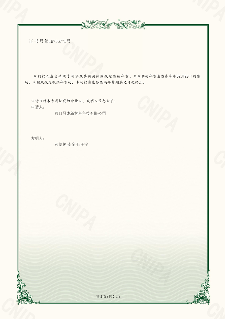 Copyright(C)2021,Yingkou Changcheng New Material Technology Co., Ltd. All Rights Reserved.
